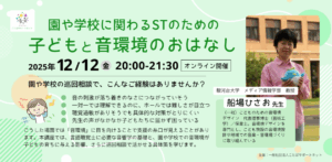 ことばサポートネット主催「園や学校に関わるSTのための子どもと音環境のおはなし」開催のお知らせ