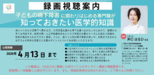 [録画配信]子どもの嚥下障害に関わりはじめる専門職が知っておきたい医学的知識 ~基礎知識とリスク管理~配信のお知らせ